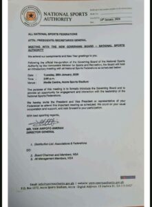 In a formal invitation issued by Mr. Yaw Ampfo Ankrah, Director General of the NSA, each federation has been requested to send its President and Vice President or an appointed representative to attend. The notice emphasized the importance of the meeting and expressed anticipation for full participation.