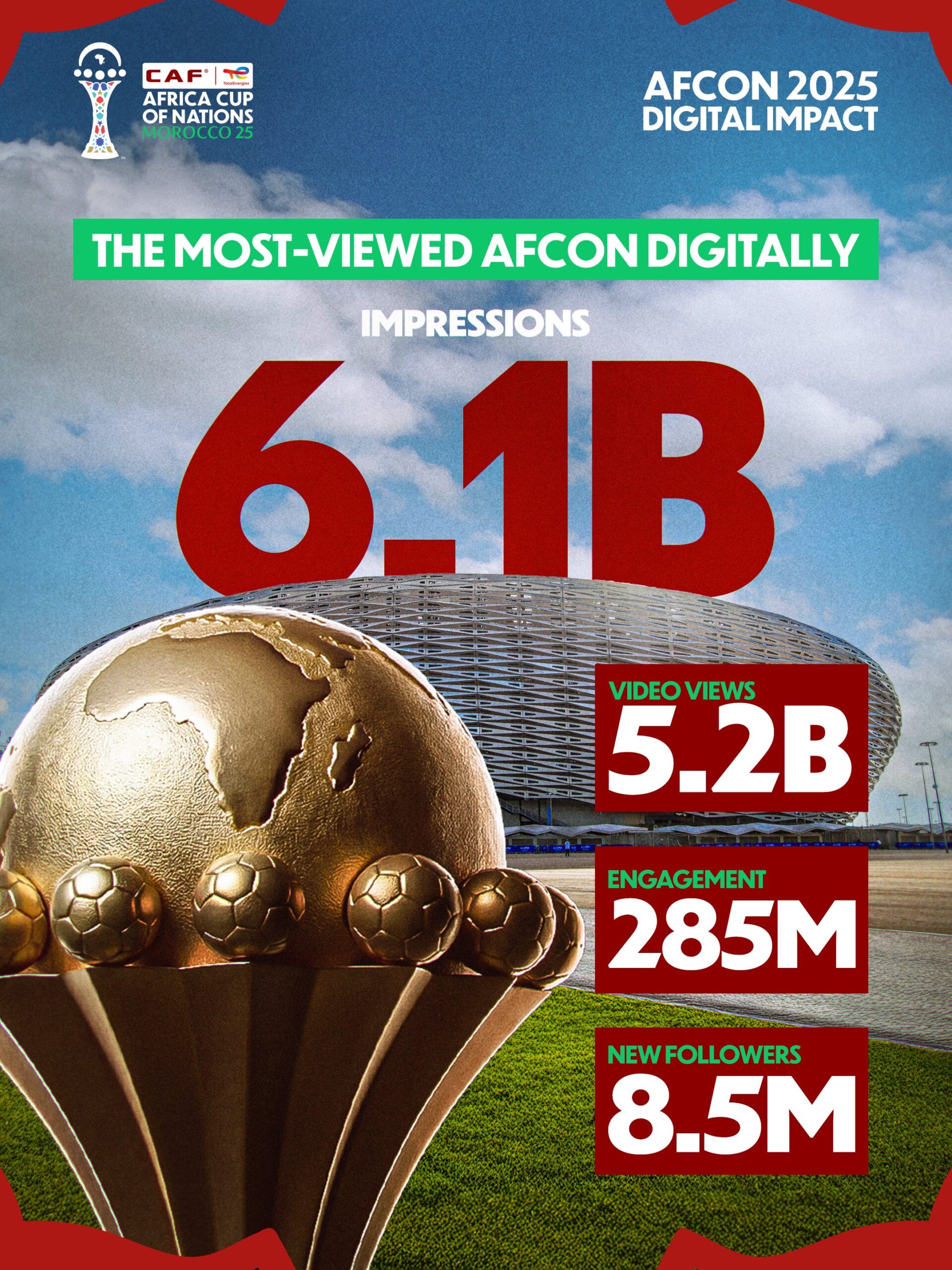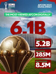 The TotalEnergies CAF Africa Cup of Nations (AFCON) Morocco 2025 has broken new ground with a record 6 billion digital views across social media platforms during the Competition.