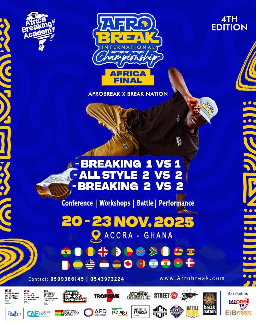 Africa’s top breaking talent will converge in Ghana from November 21-23, 2025, for the Africa Finals of the Afrobreak International Championship.