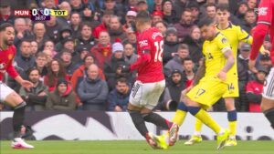 United created the first clear chance in the 11th minute, with Casemiro firing a powerful long-range shot that Tottenham goalkeeper Guglielmo Vicario did well to palm away. Manchester United number ten, Matheus Cunha came close nine minutes later, curling a shot from outside the area narrowly wide of the post.