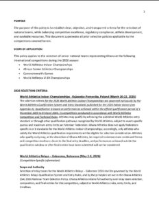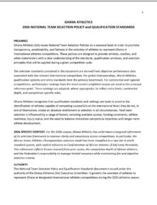 Ghana Athletics has officially released its 2026 National Team Selection Policy and Qualifying Standards, setting a clear path for how athletes will earn places on national teams for international competitions next year.