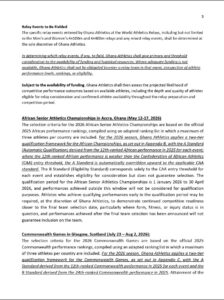 Ghana Athletics has emphasized that merit will be the only basis for selection. The standards have been set with international competitiveness in mind, pushing athletes to reach levels that will allow them to perform well on the global stage.
