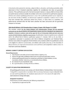 The document, now available for review, outlines the specific performance times, marks, and scores that athletes must achieve to be considered for selection. It also details the step-by-step process that selectors will follow when choosing teams.