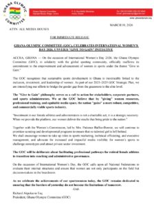 The Ghana Olympic Committee (GOC) has joined the world in celebrating International Women’s Day 2026. To mark the occasion, the committee has announced a renewed promise to support women in sports through a new philosophy called “Give to Gain.”