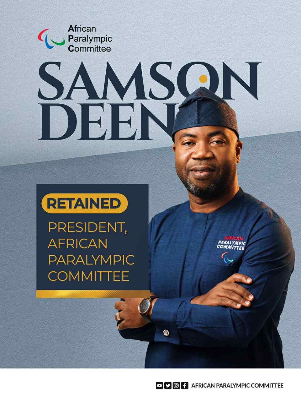 National Paralympic Committee(NPC) President of Ghana Mr Samson Deen,has been re-elected as President of the African Paralympic Committee (AfPC) for another term.