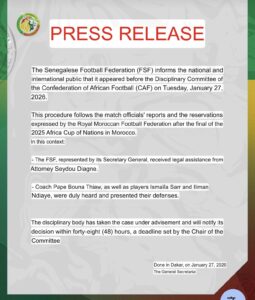 The national team’s coach, Pape Bouna Thiaw, along with players Ismaïla Sarr and Ilman Ndiaye, were also present. They were duly heard by the panel and were able to present their statements in defense.