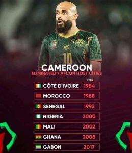 Their record in knockout matches against host nations is formidable. Since losing the 1986 final to Egypt on penalties, Cameroon have won their last five AFCON knockout-stage games against hosts. This includes wins against Morocco (1988), Senegal (1992), Nigeria (2000 final), Mali (2002), and Ghana (2008).
